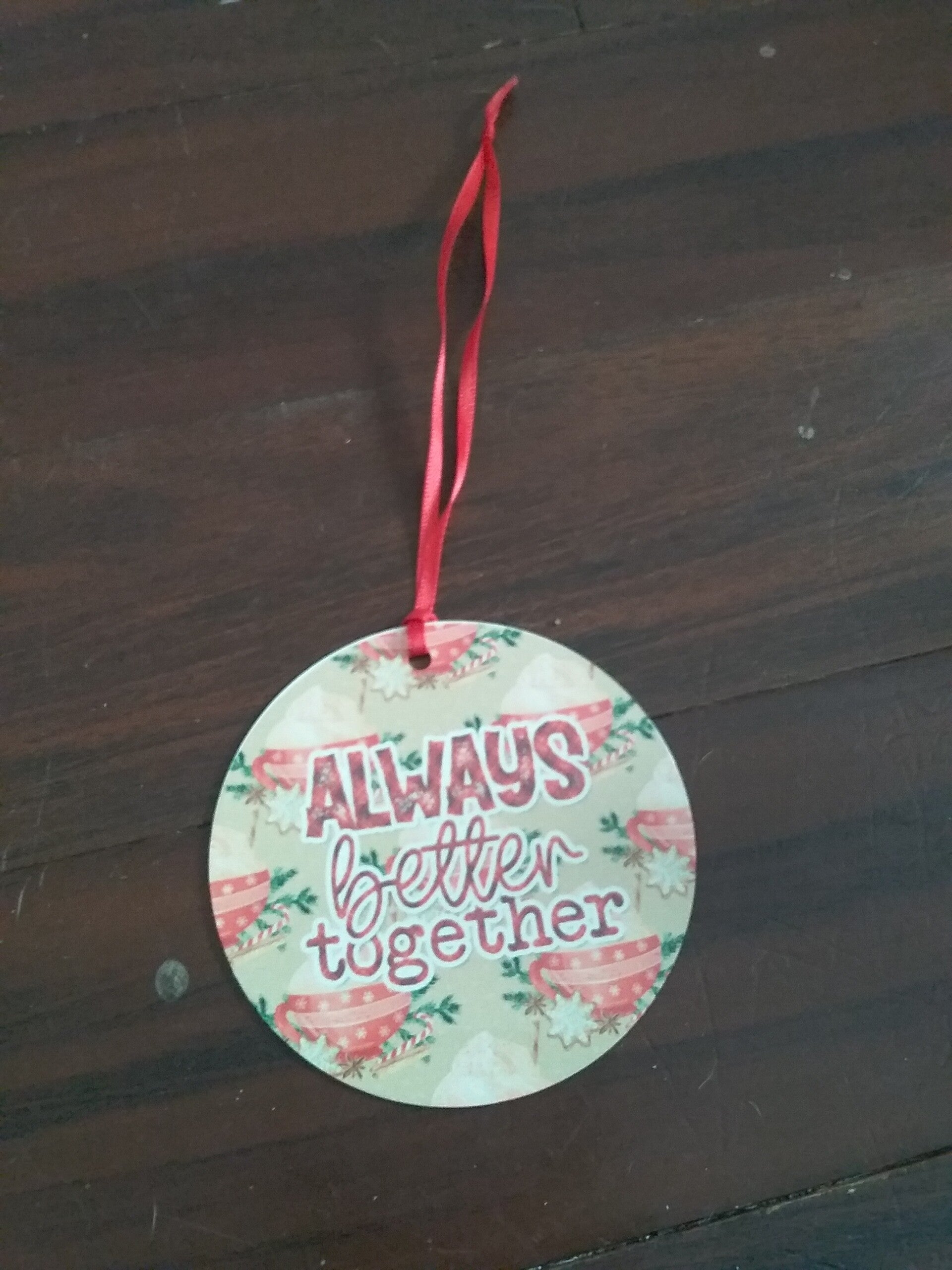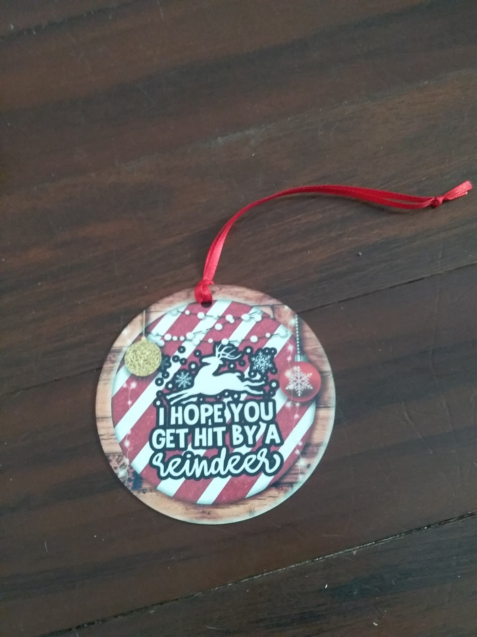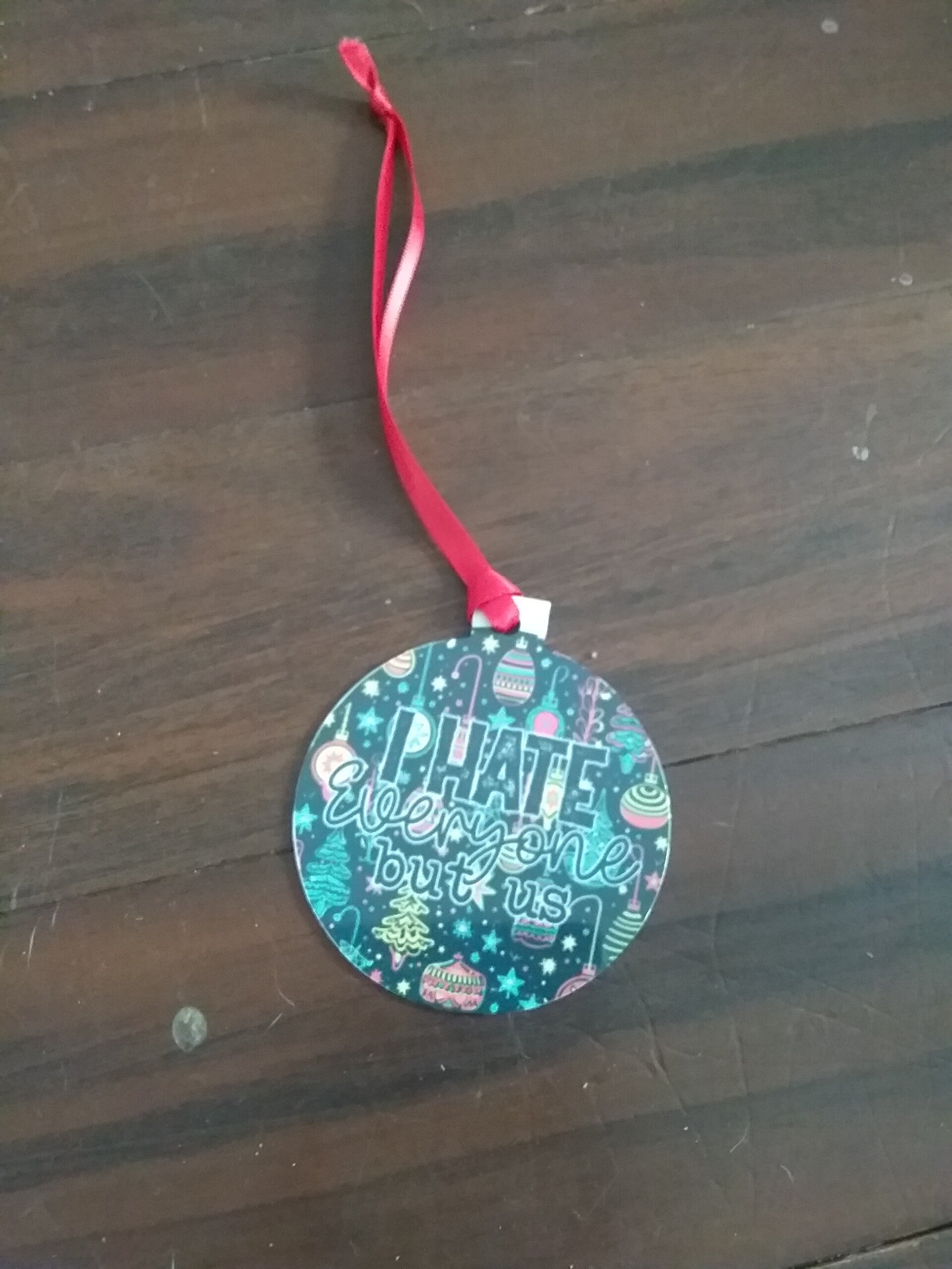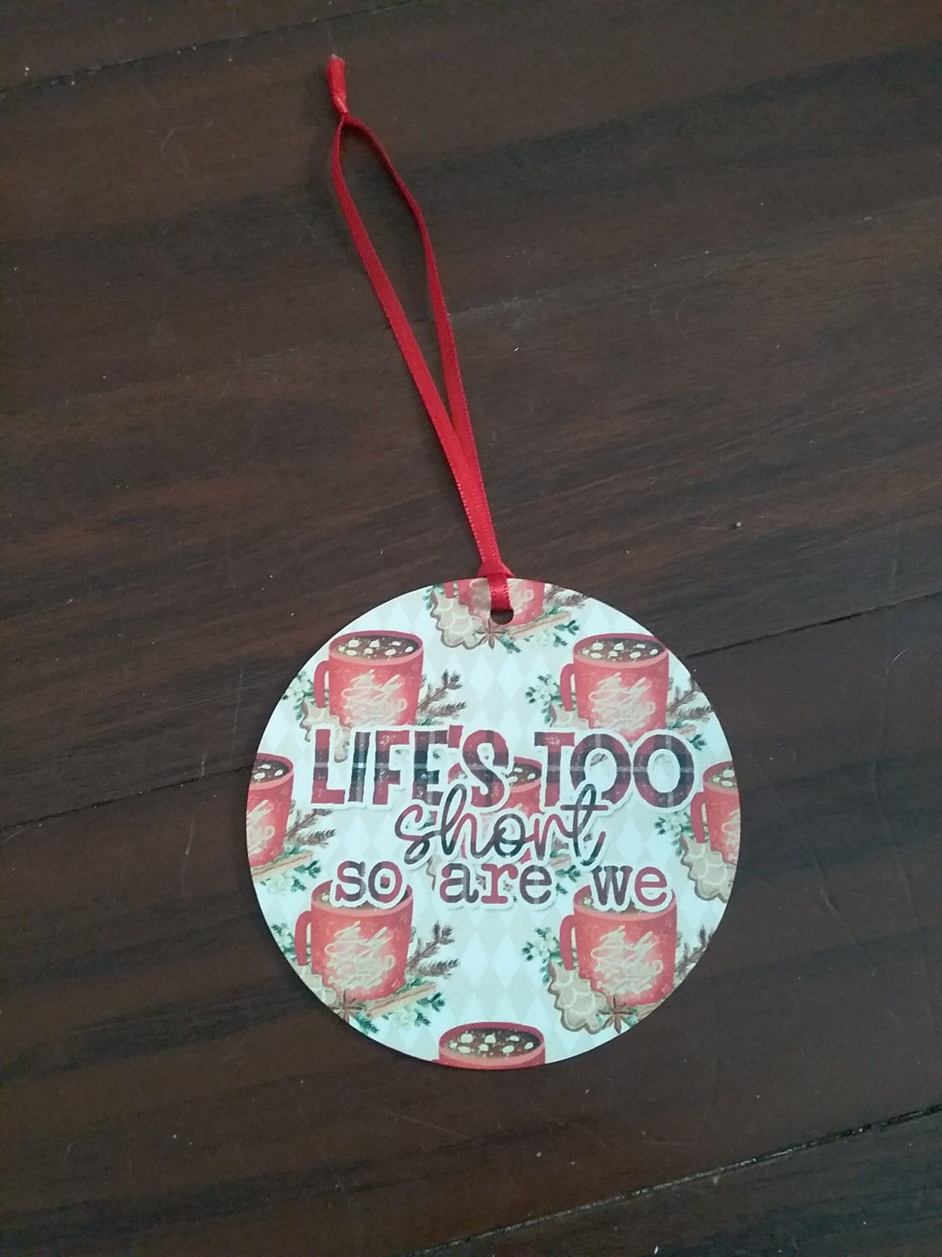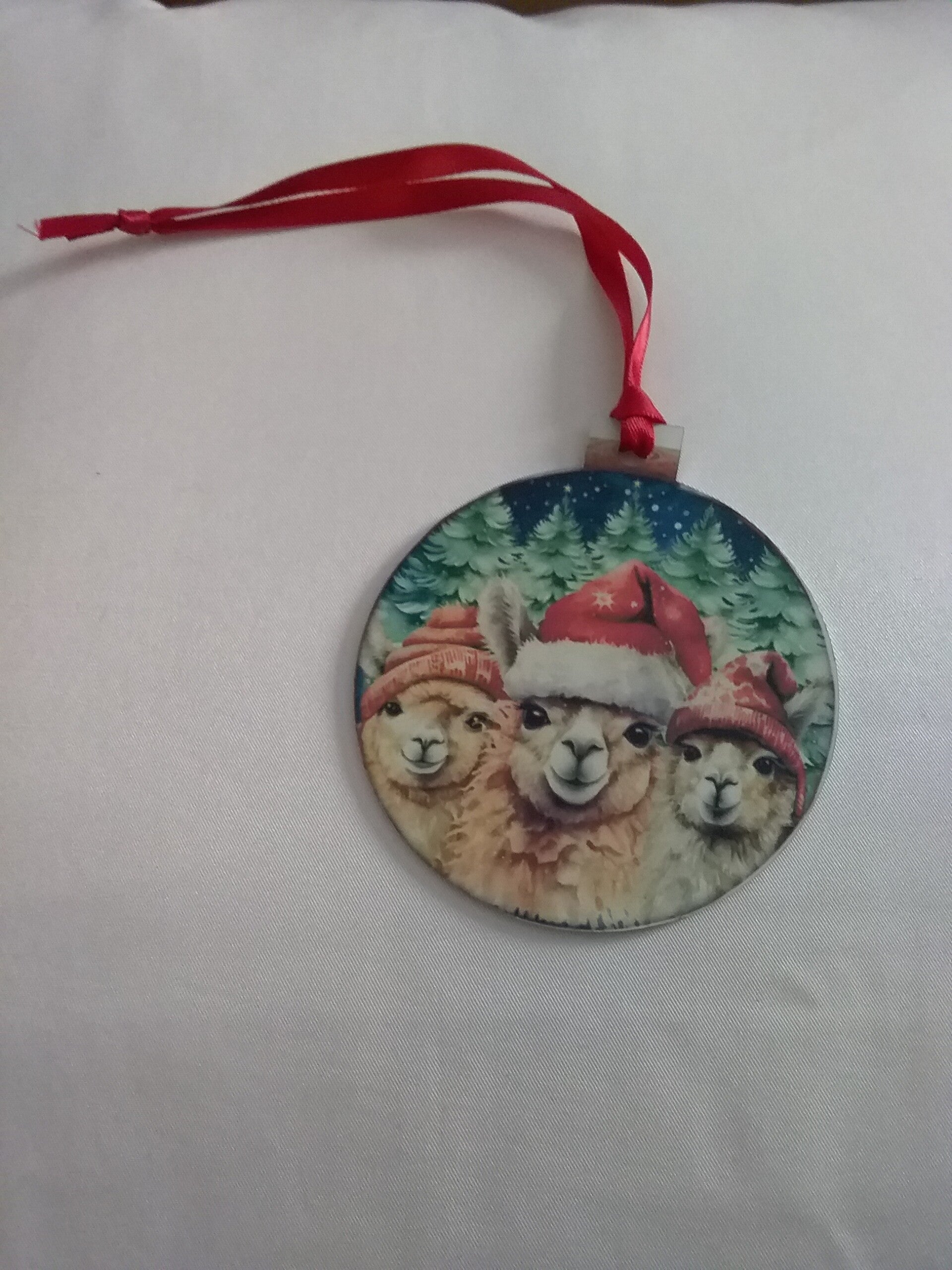 Different shapes of aluminum ornaments and can be customized with any photo on the ornament. Price ranges $8-10