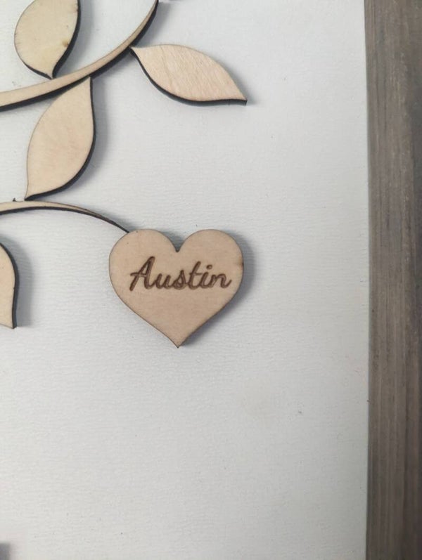 There is a box on the checkout page to place notes which you will put the names in you'd like on the hearts. Also if you would like a different sign than 12x12 pricing will be different. Please send an email.